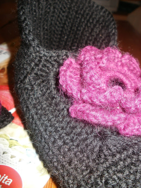Capucine löytyy muuten ravelrystä. Kutsuttakoon omaa versiotani tossusta nimellä Lady rose - ruusutohveli (vrt. alkuperäinen Granny Rose). Tämäkin on tehty 7 veljeksellä.